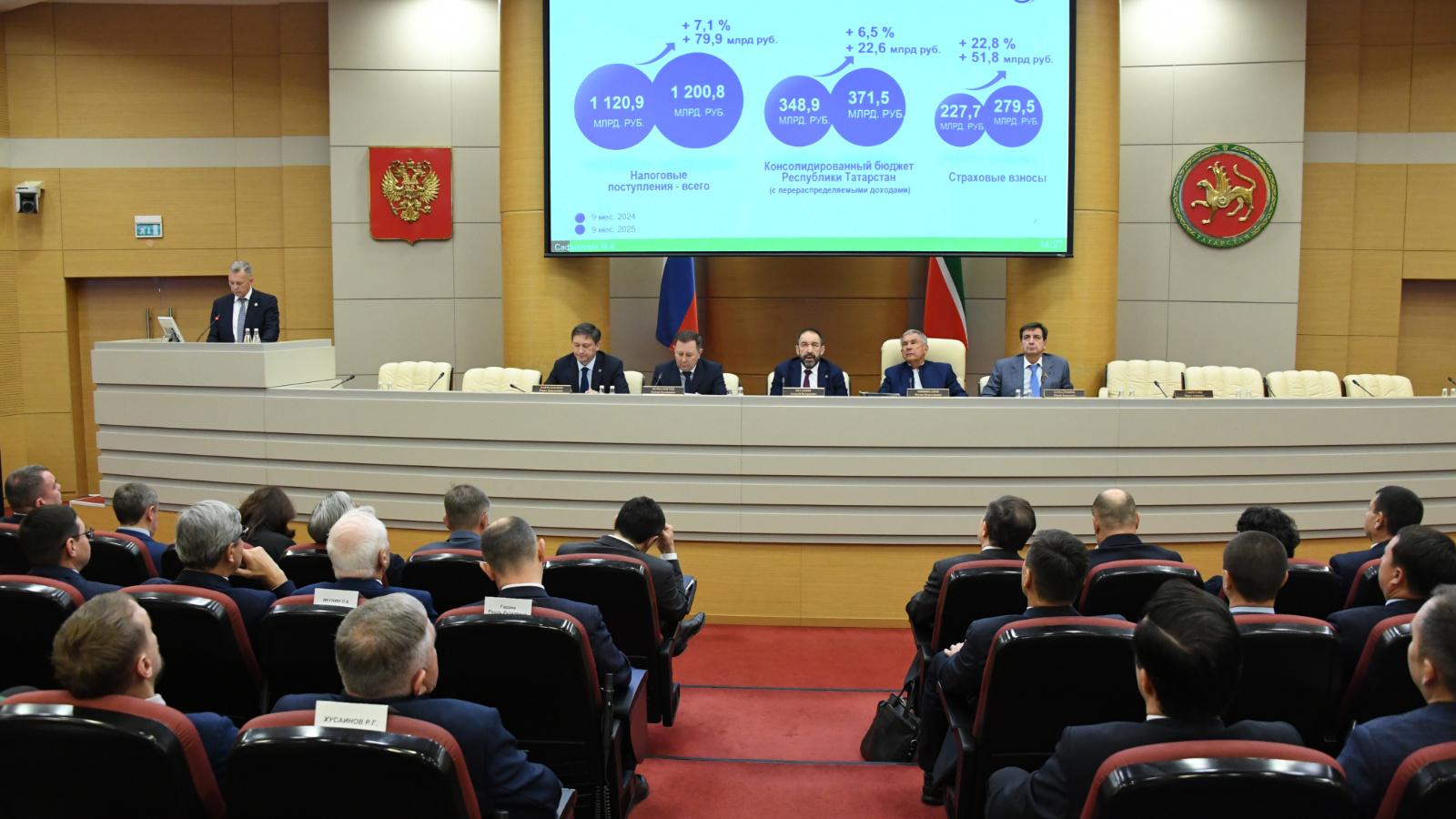 Раис Татарстана Рустам Минниханов провел республиканское совещание финансовых, казначейских и налоговых органов по итогам исполнения консолидированного бюджета республики за 9 месяцев 2025 года. Мероприятие прошло в Доме Правительства РТ. В работе принял участие Премьер-министр Татарстана Алексей Песошин.